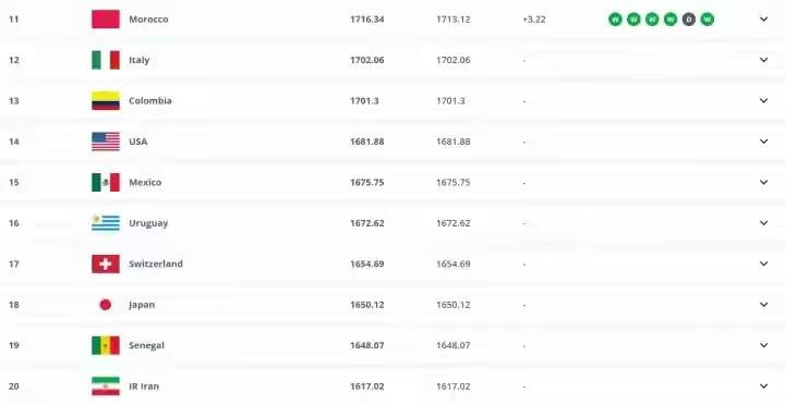 FIFA国家队年终排名前二十中,欧洲占据十队,半壁江山,不得不说欧洲足球依然是世界足球的中心;南美四队,都是强队;中北美及加勒比海地区、非洲和亚洲都是两队,其中伊朗排名第二十让部分球迷感到意外。
