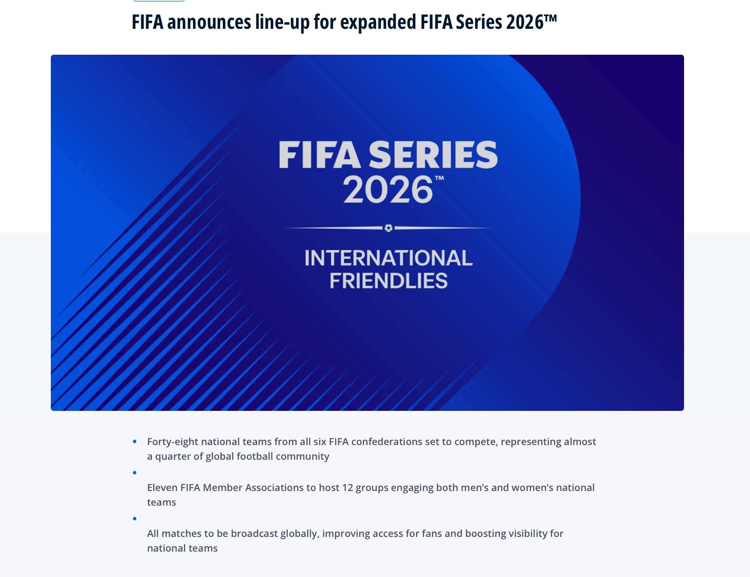 另外这项赛事在不增加国际比赛日负担的前提下,还将为许多国家队提供跨大洲竞技的机会,同时推动各队的技术提升、组织发展和全球交流。
